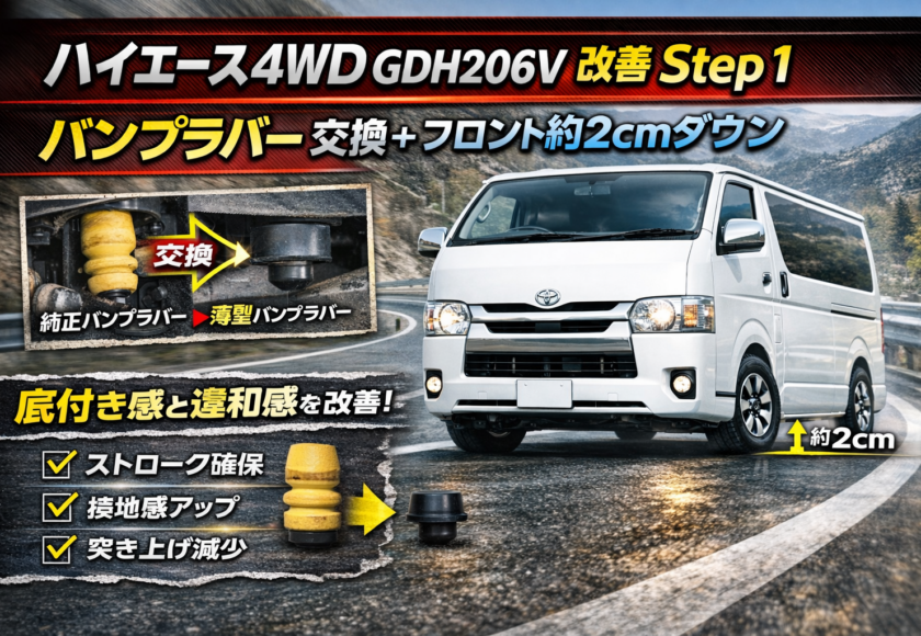 3)順番がポイント:バンプラバー交換 → その“生まれたストローク”で車高を下げる